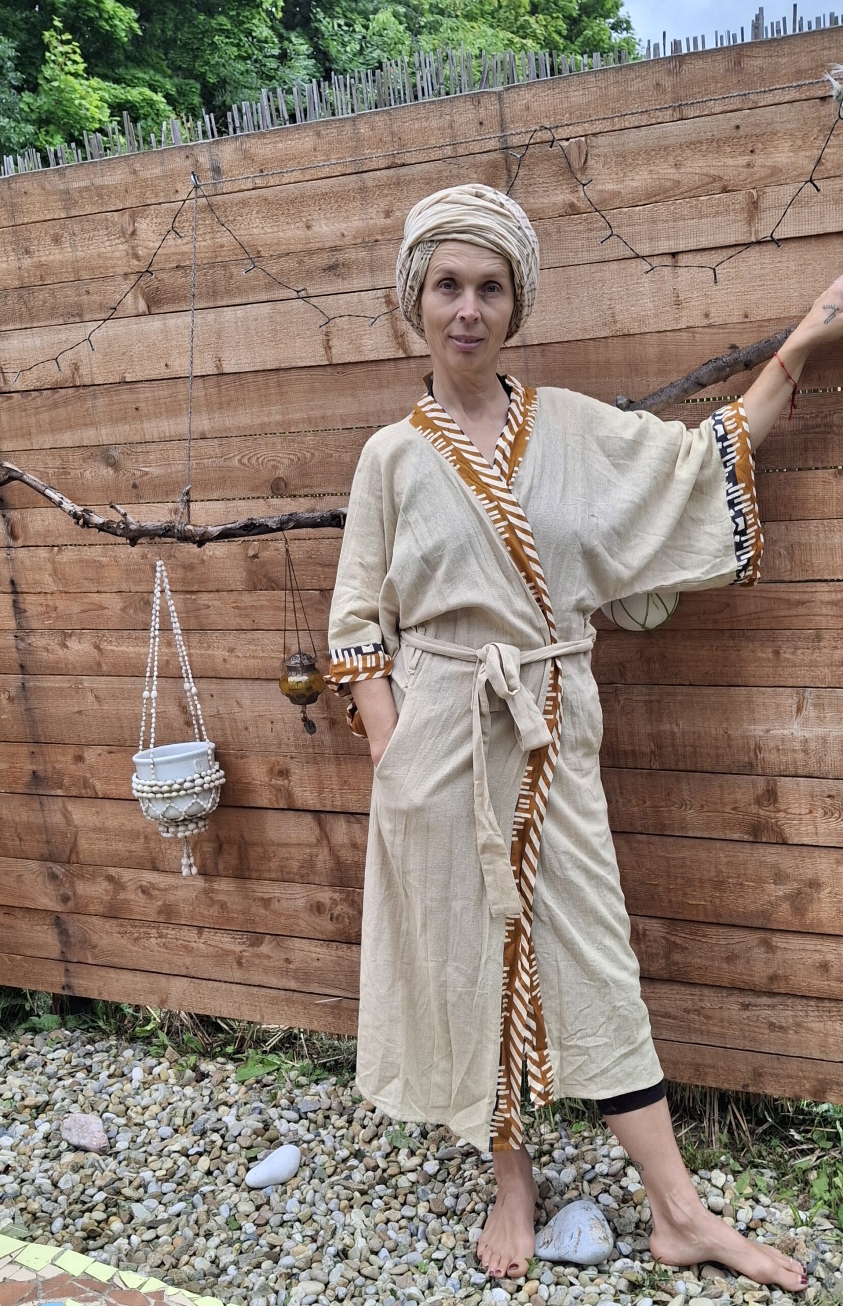 Pohodlný domácí oděv stylu kimono, který ale určitě rádi využijete k vodě, do sauny, na cesty i na doma. Velikost 36 až 40