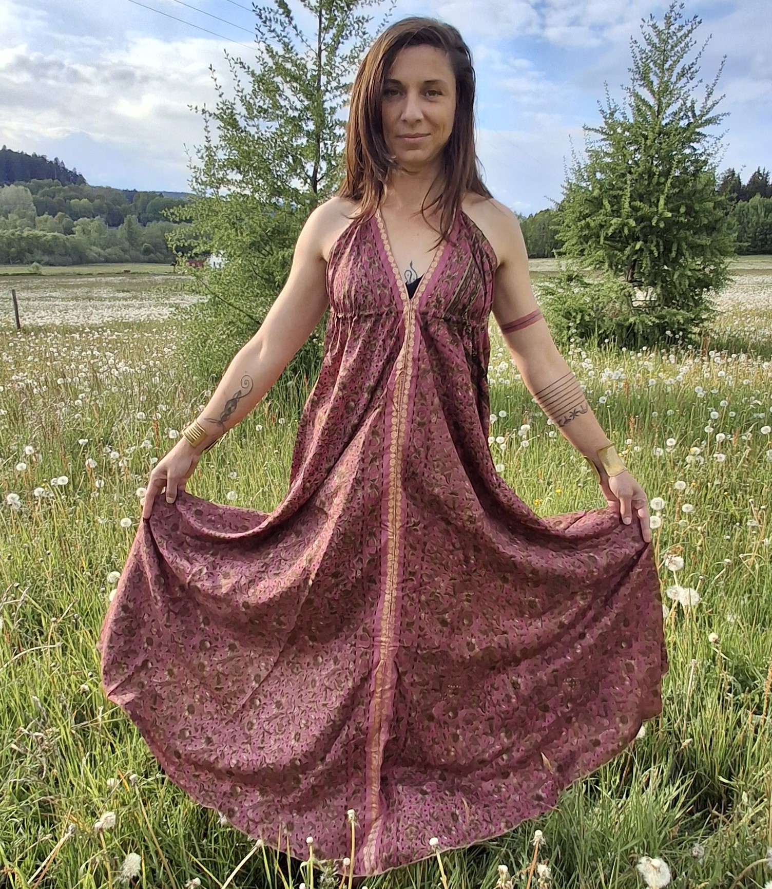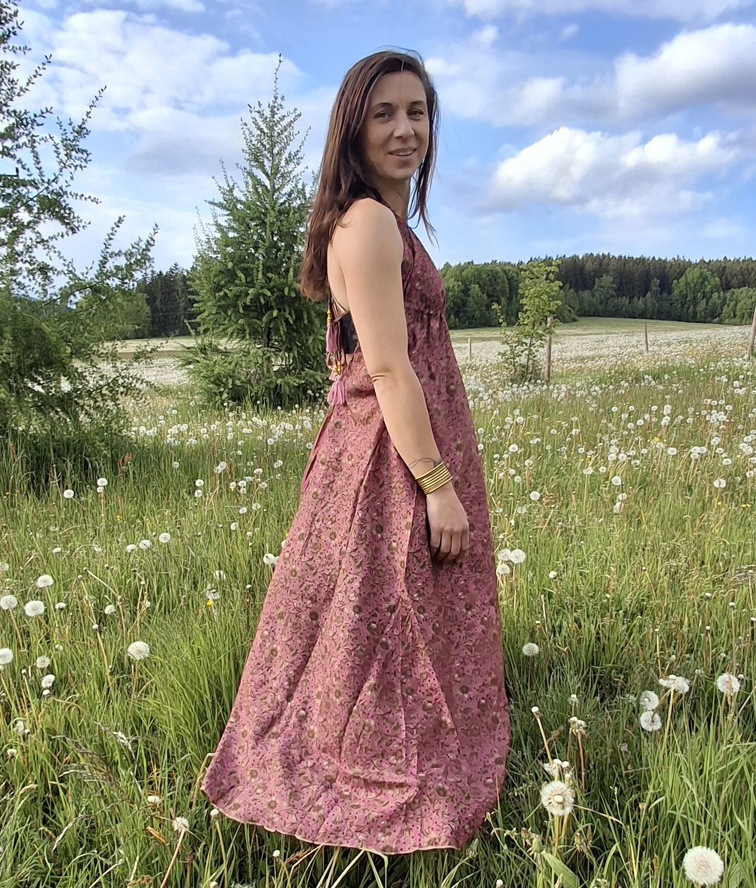 Další z řady šatů nejen na pláž..tentokrát s drobným květinovým vzorem. Materiál recyklované hedvábné sárí. vel. variabilní 36-42